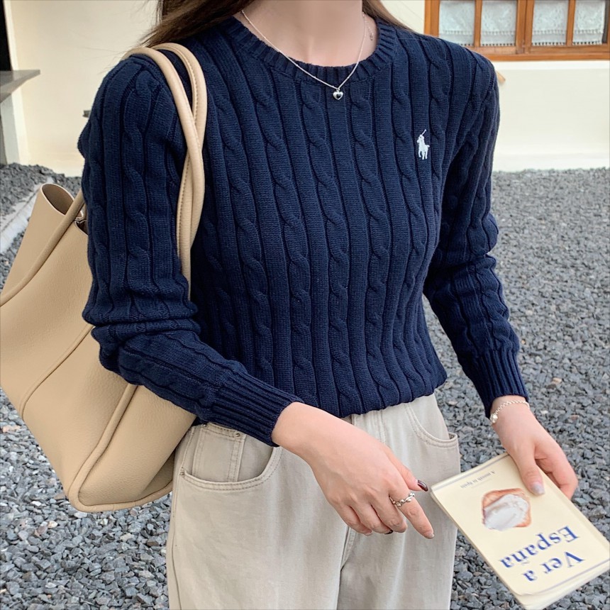 폴로 랄프로렌 여성 케이블 라운드넥 꽈배기 니트 포니 로고