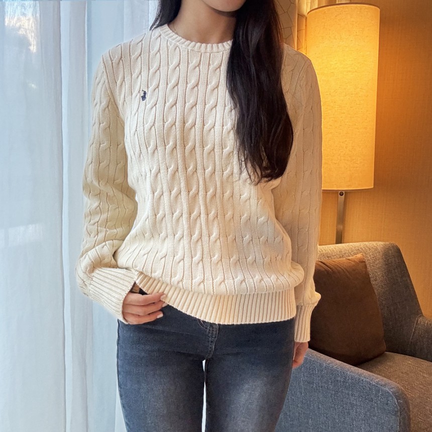 폴로 랄프로렌 여성 라운드넥 꽈배기 니트 스웨터