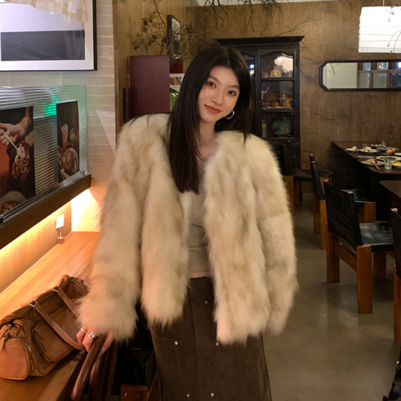 고급스러운 여성 짧은 폭스 퍼 코트 겨울 외투