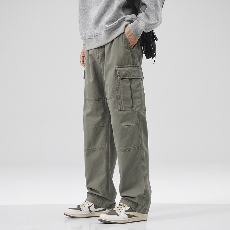 가을 신상 면 공용 와이드핏 포켓 남성 캐주얼 팬츠