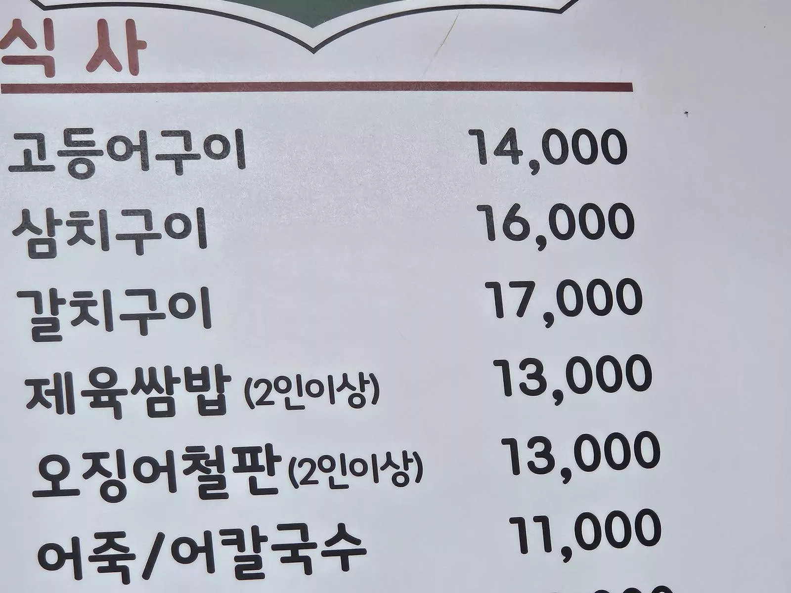 포천의 어느 식당 17,000원 갈치구이