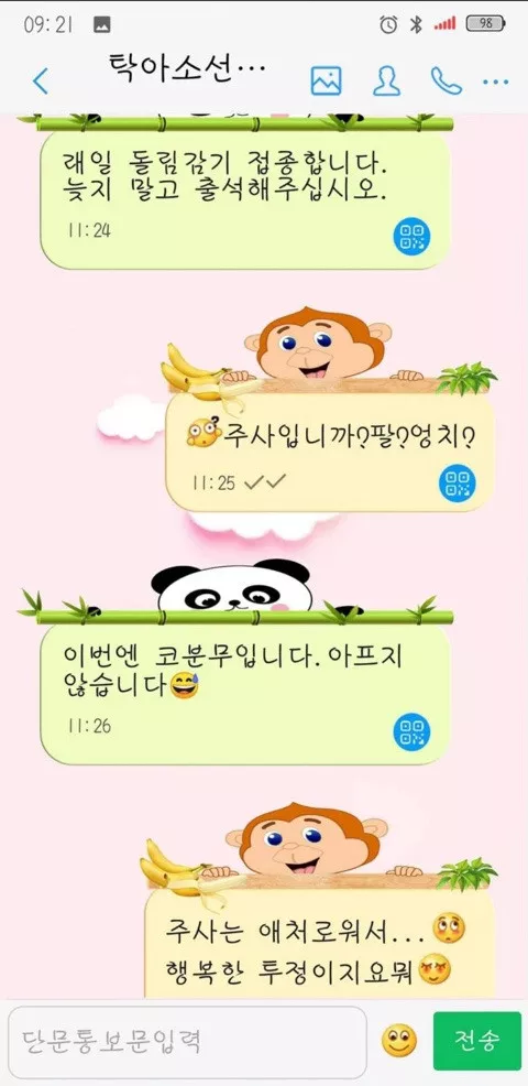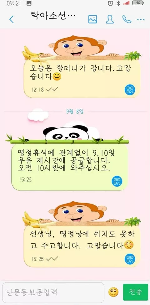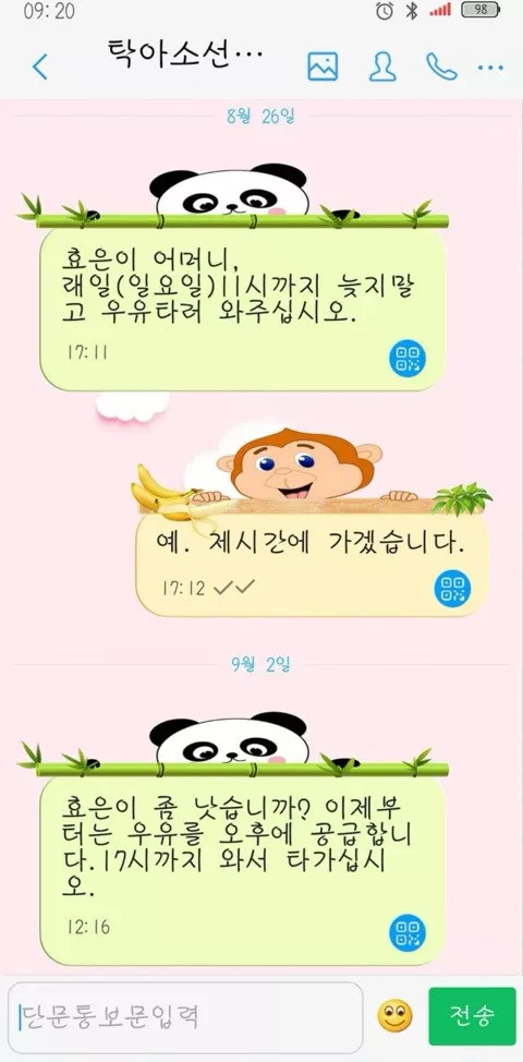 탁아소 선생님과 나눈 단문통보문
