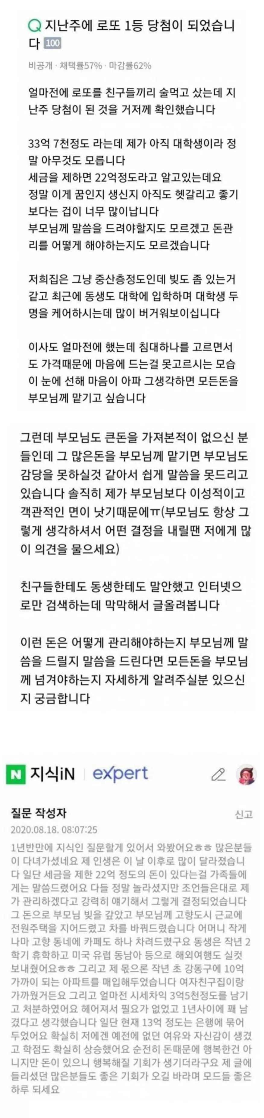 로또 1등 22억 수령한 대학생