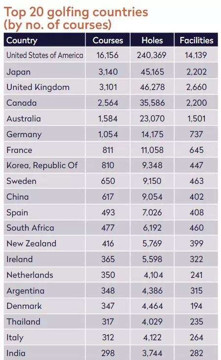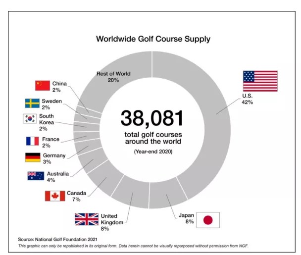 2020년 기준 우리나라의 골프장은 코스 기준 810개로, 전 세계 8위 규모