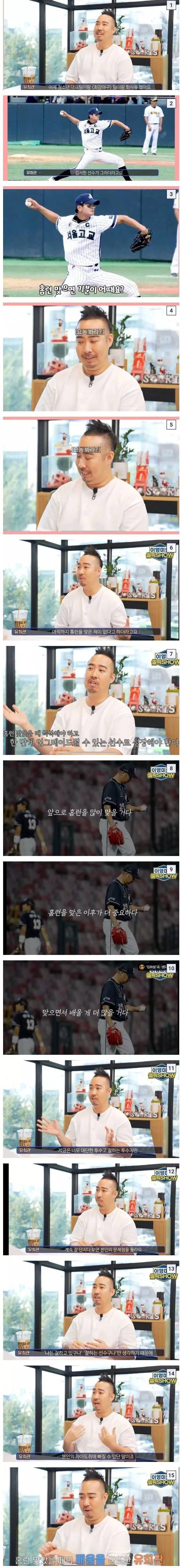 최강야구 회식 때 유희관에게 홈런 맞으면 기분 어떠냐고 물어봤던 김서현