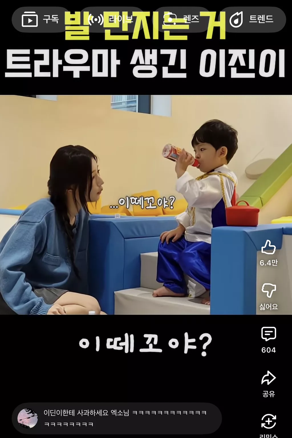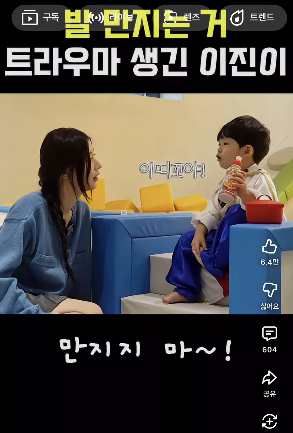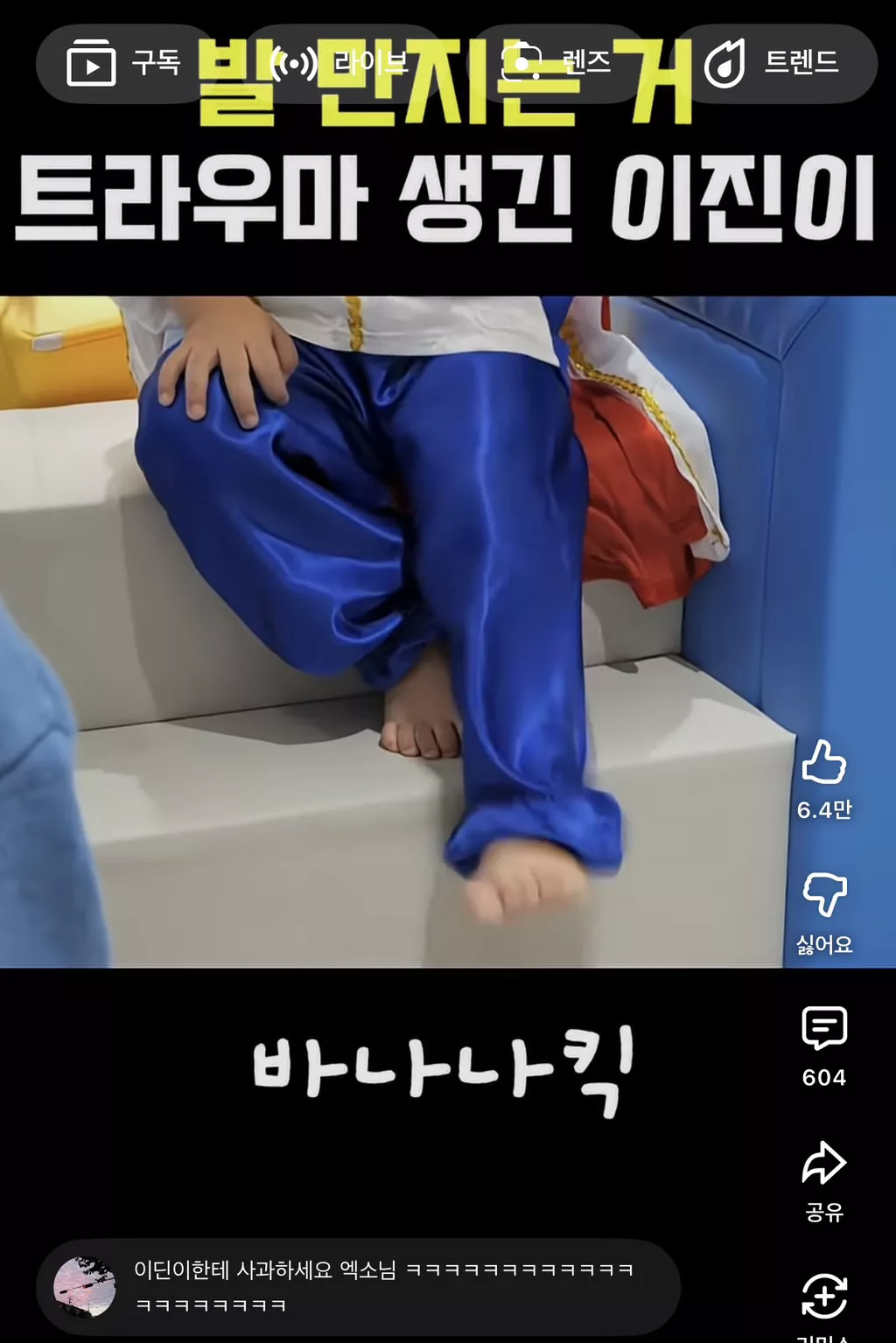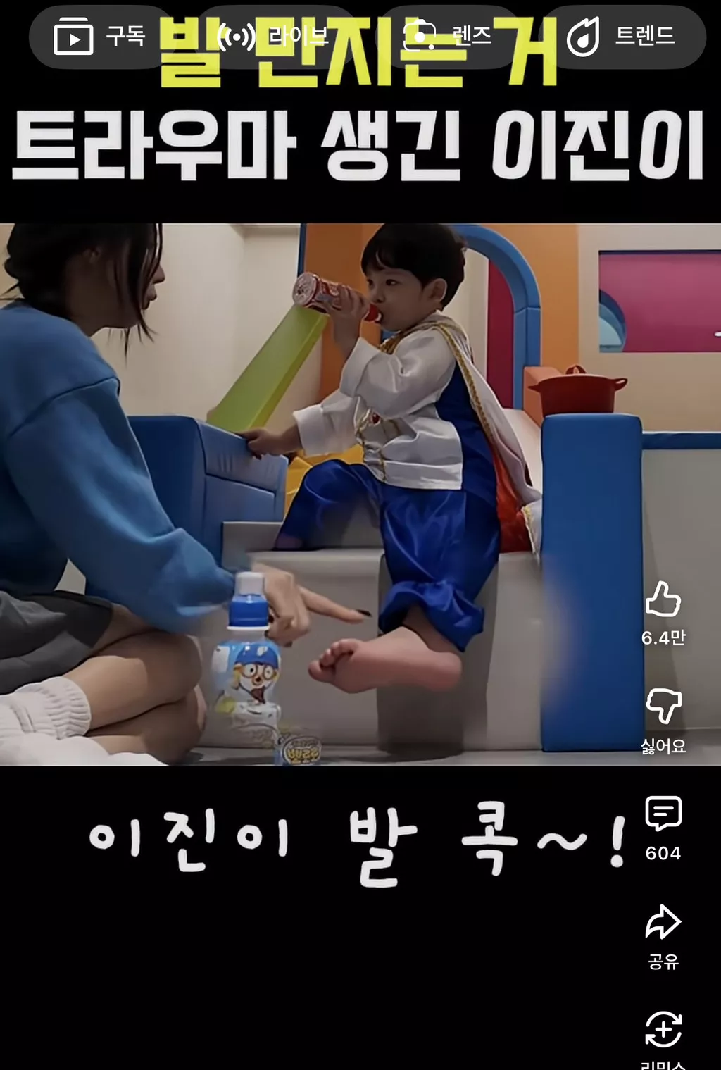 알고보니 지난번 엑소삼촌들이 이진이 귀엽다고 발을 먹어서...트라우마가 생김 ㅜㅋㅋㅋㅋㅋ