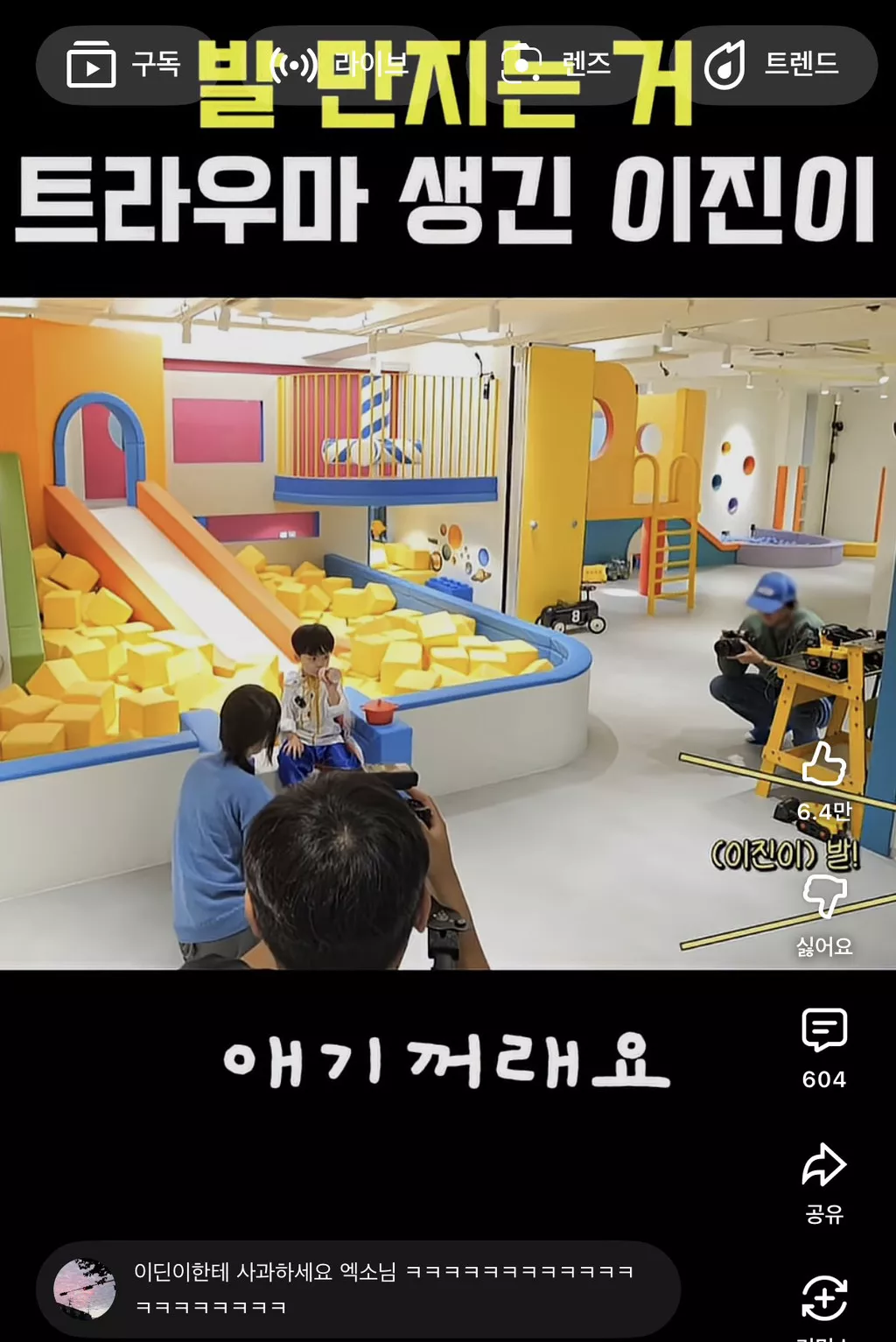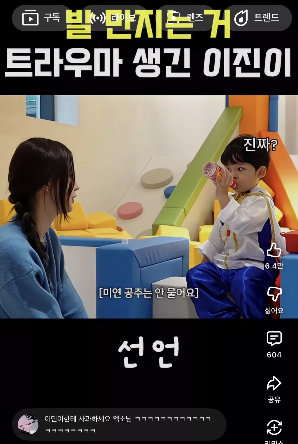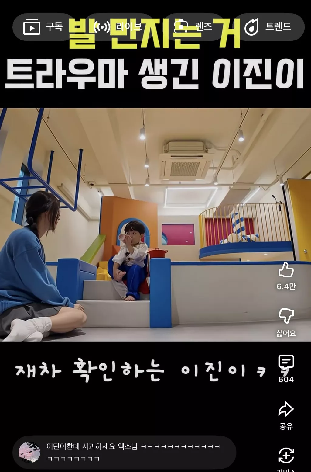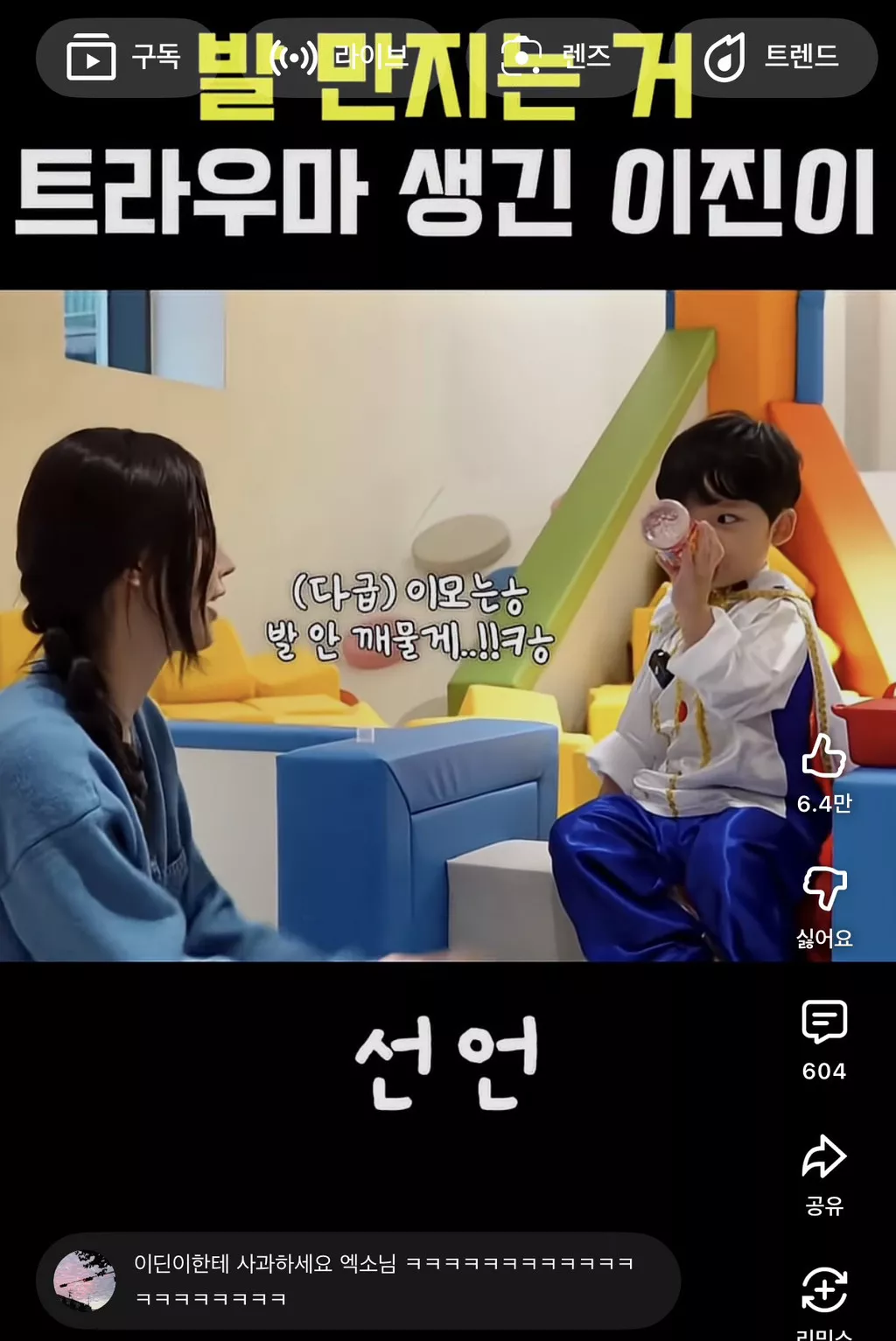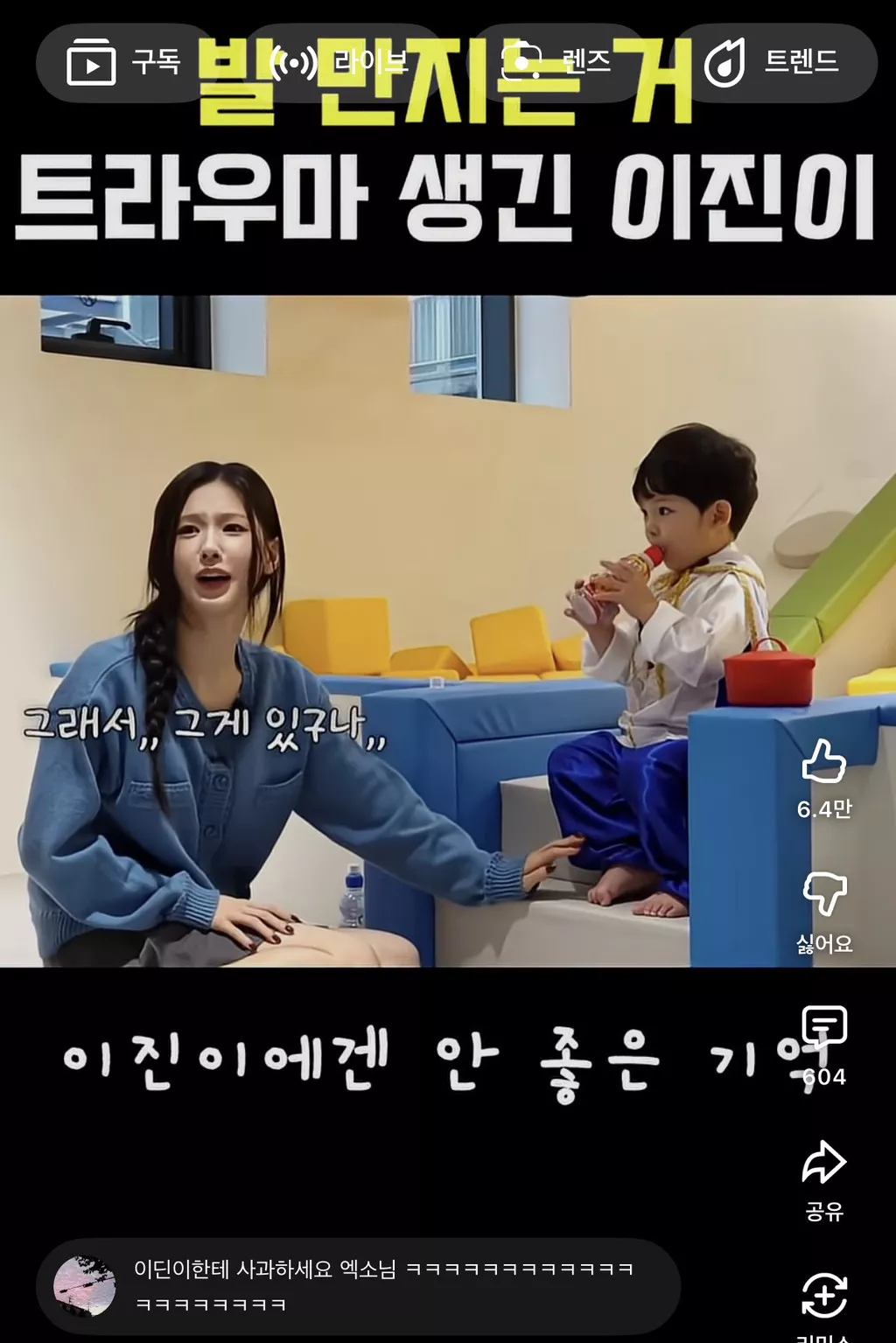 알고보니 지난번 엑소삼촌들이 이진이 귀엽다고 발을 먹어서...트라우마가 생김 ㅜㅋㅋㅋㅋㅋ