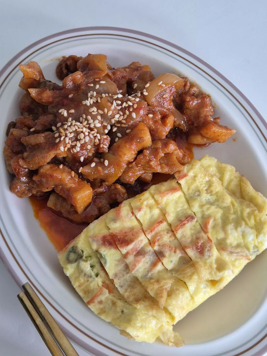 삼겹살 볶아서 계란말이랑 먹기