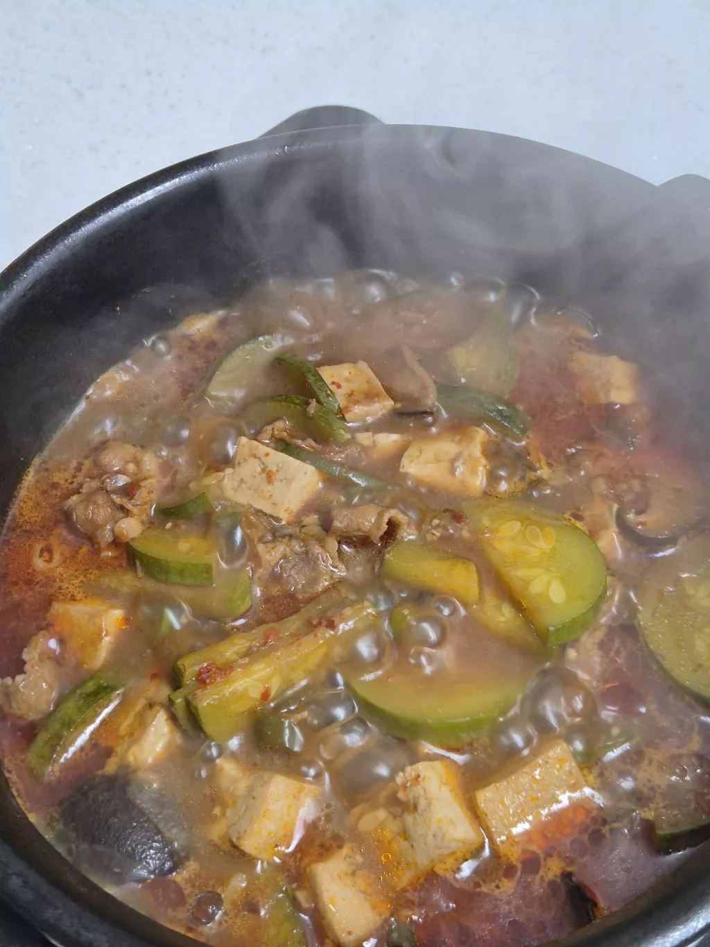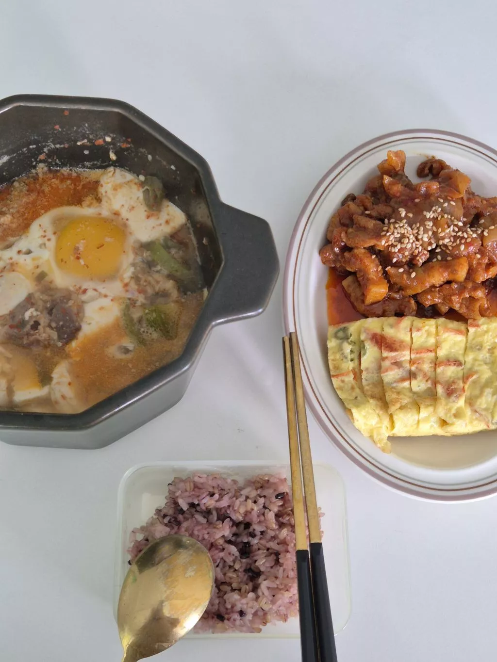 제육이랑 순두부찌개 둘 다 먹고 남은거