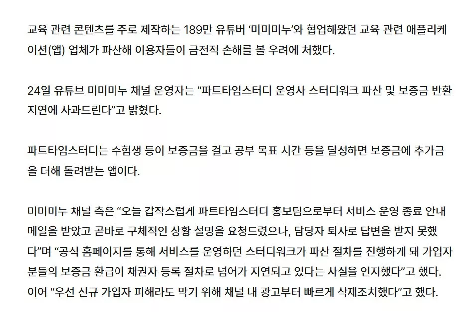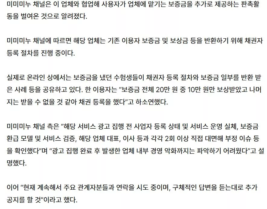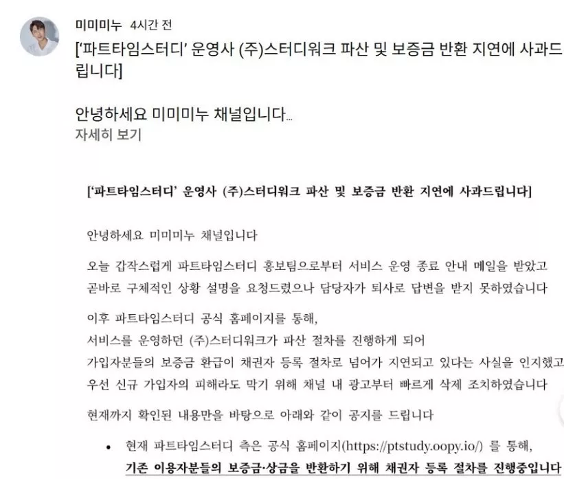 미미미누가 광고하던 업체가 수험생들 코묻은돈으로 폰지사기치고 잠적함