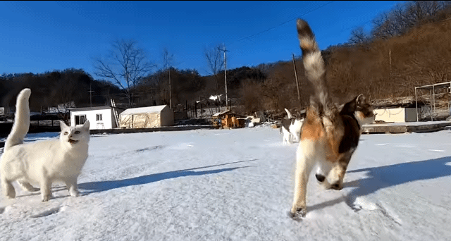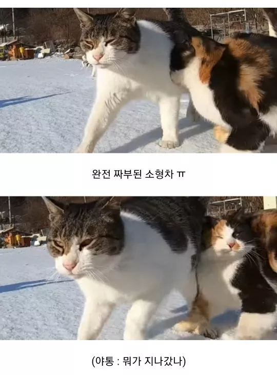 거대한 야통이와 작은 삼색이 충돌사고