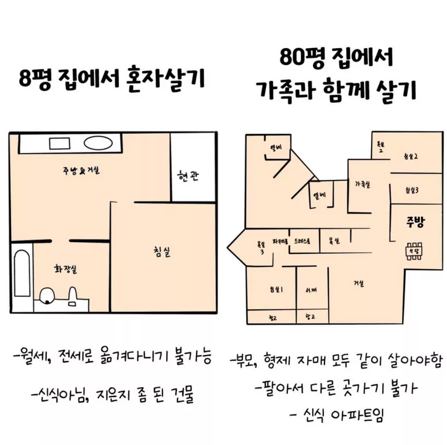 8평 혼자 살기 vs 80평 다 같이 살기.