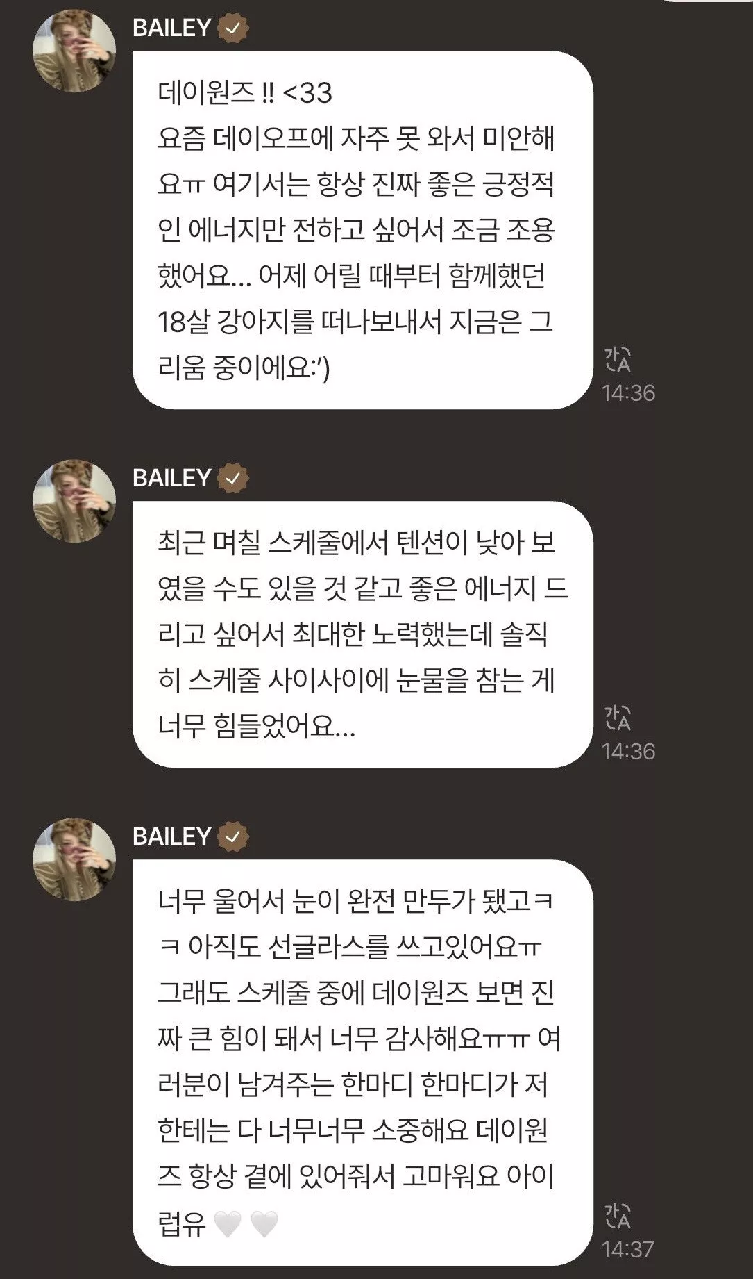 올데프 베일리가 최근 스케줄에서 계속 선글라스를 쓴 이유