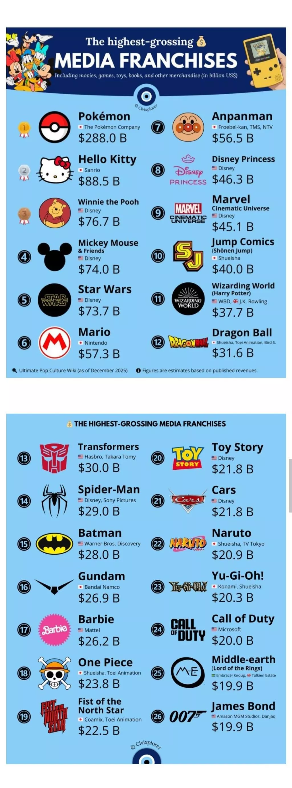 역대 최고 수익 미디어 프랜차이즈 순위