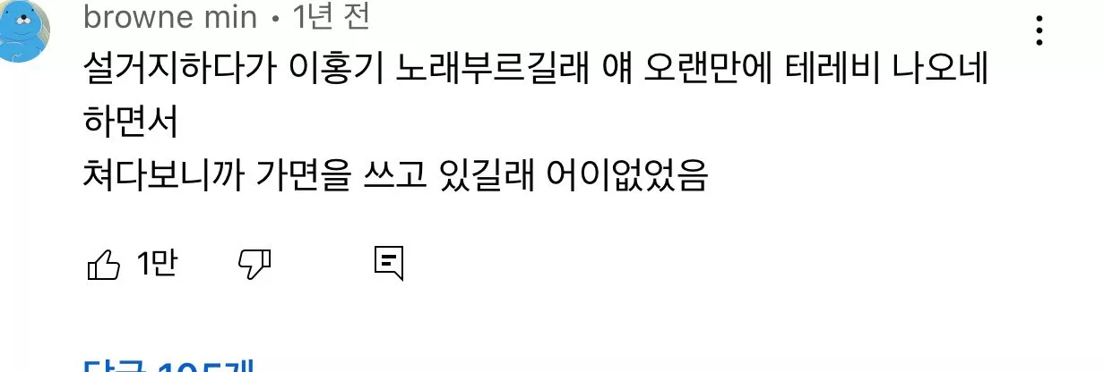 설거지하다가 이홍기 노래 부르다가 얘 오랜만에 테레비 나오네 하면서 쳐다보니깐