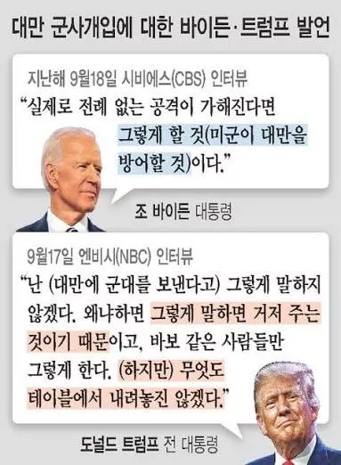 노골적으로 주한미군의 양안전쟁 투입을 발언하며