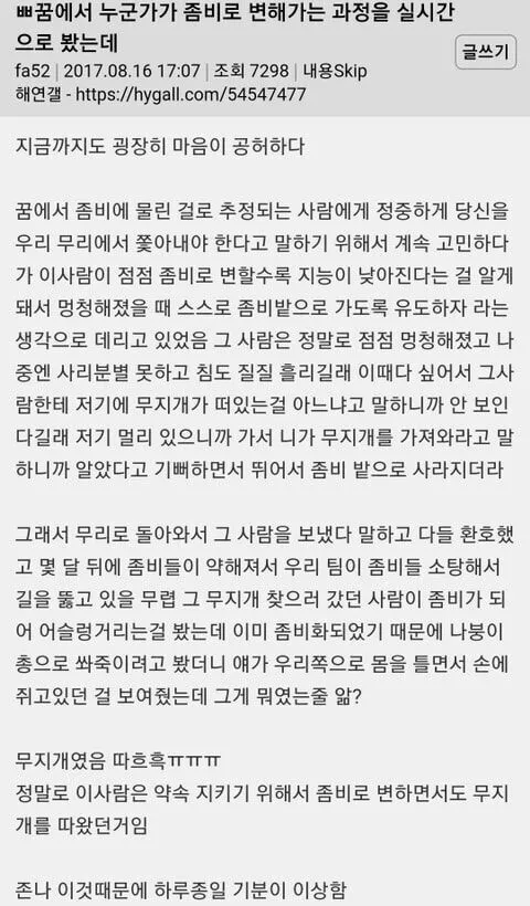 꿈에서 누군가가 좀비로 변해가는 과정을 실시간으로 봤는데