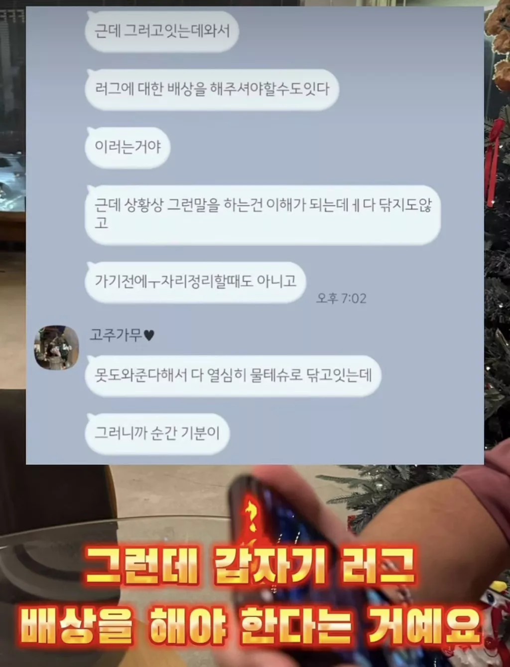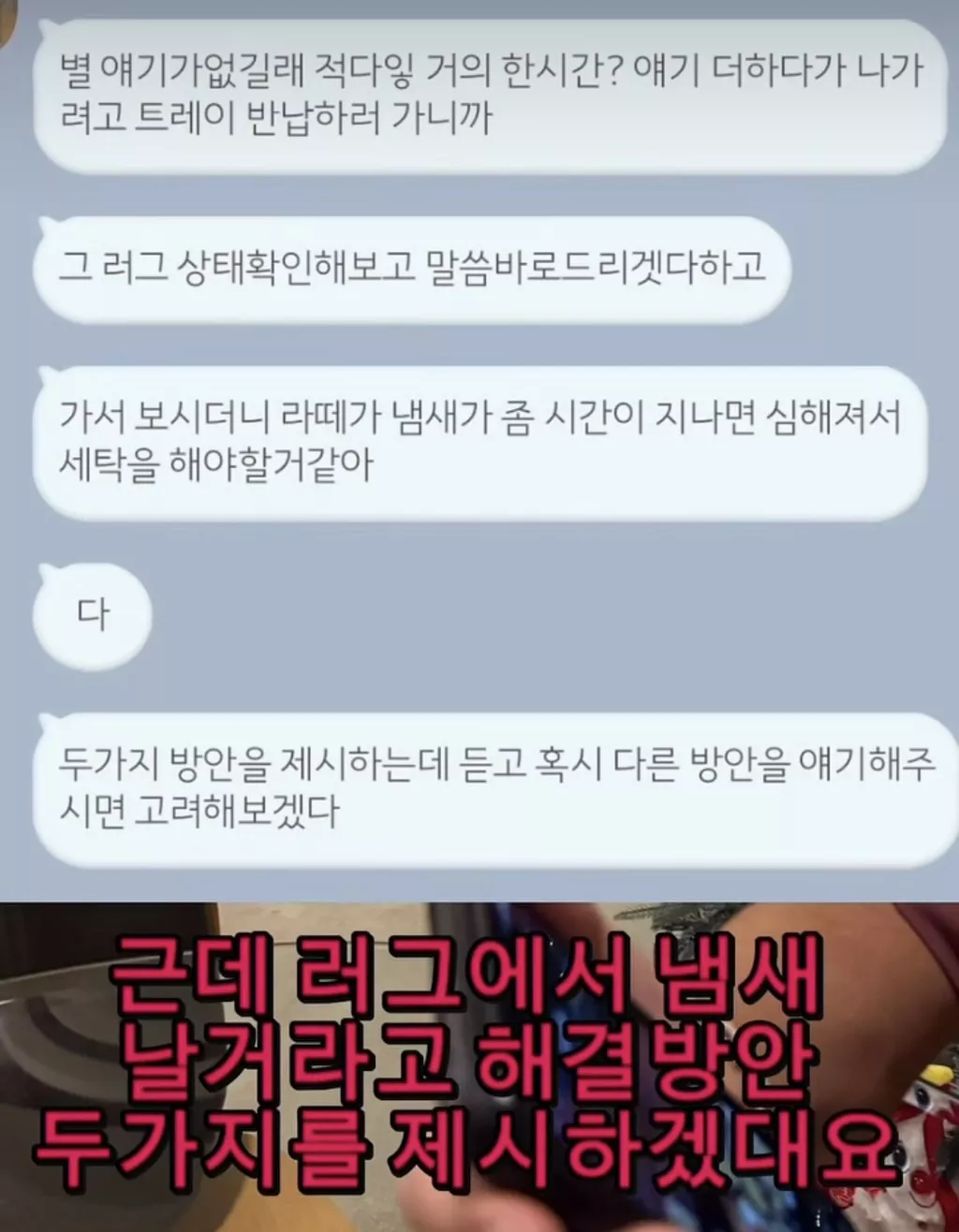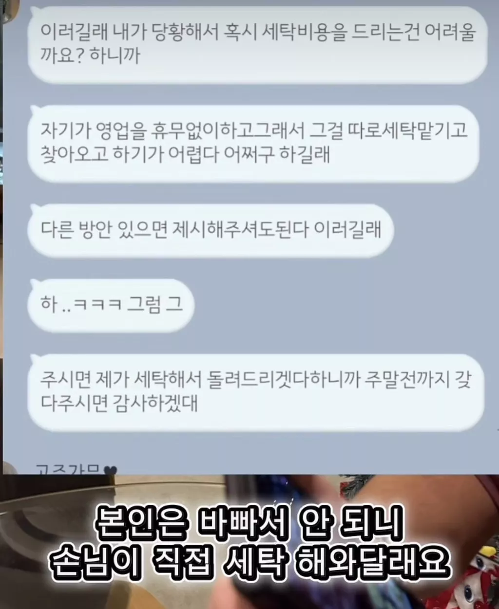 손님이 러그에 음료 흘렸는데 러그 세탁해오라고 들려보냄