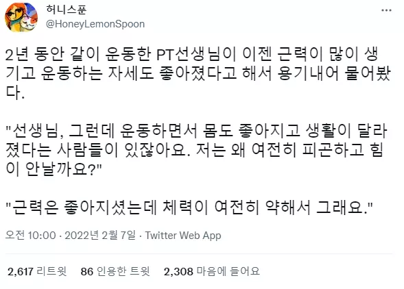 2년동안 피티를 받아도 체력이 안 늘은 이유