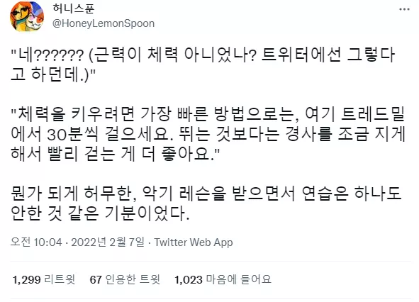 여시들 우리 같이 유산소해서 체력 올리자