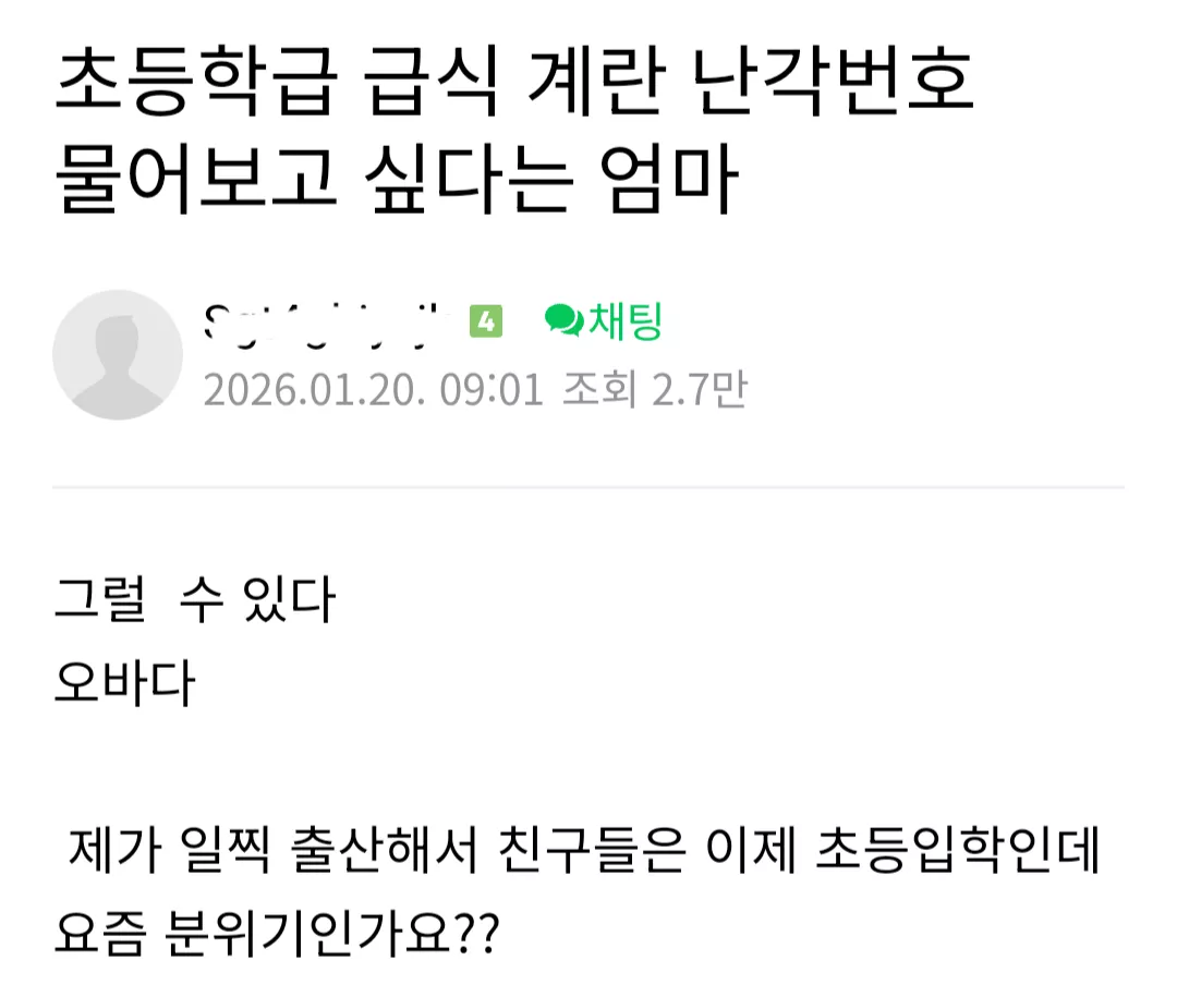더쿠 - 초등학급 급식 계란 난각번호 물어보고 싶다는 학부모