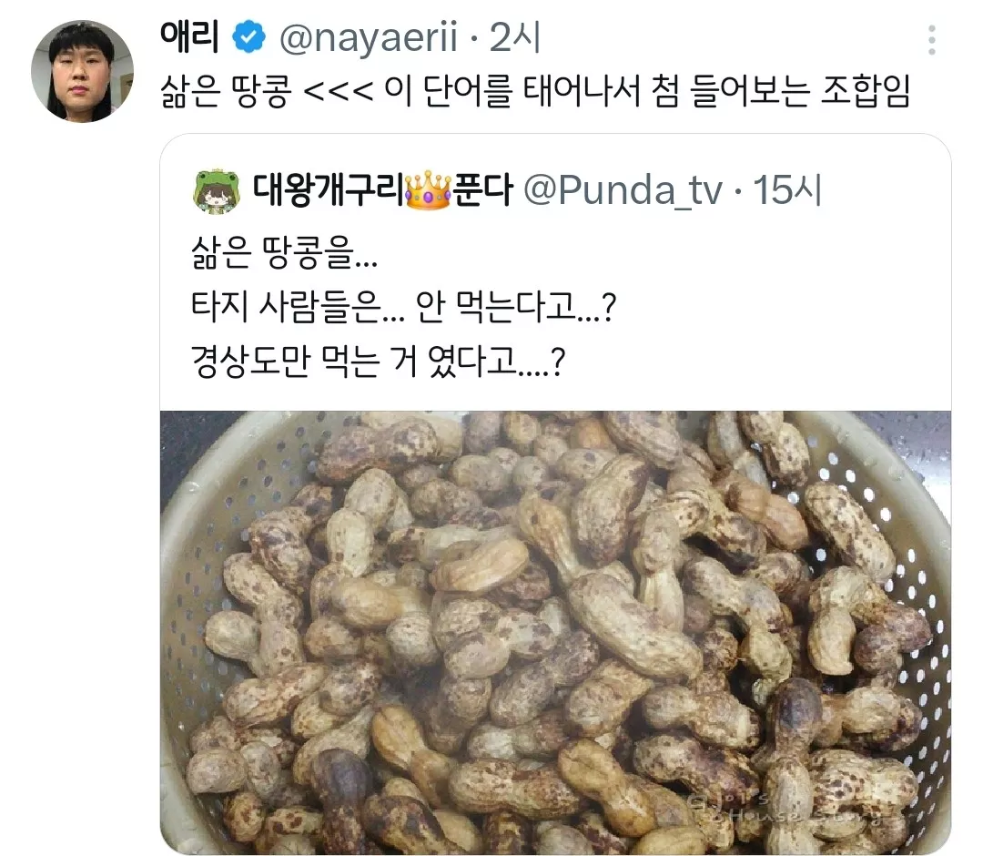 삶은 땅콩을 타지 사람들은 안 먹는다고...?.twt