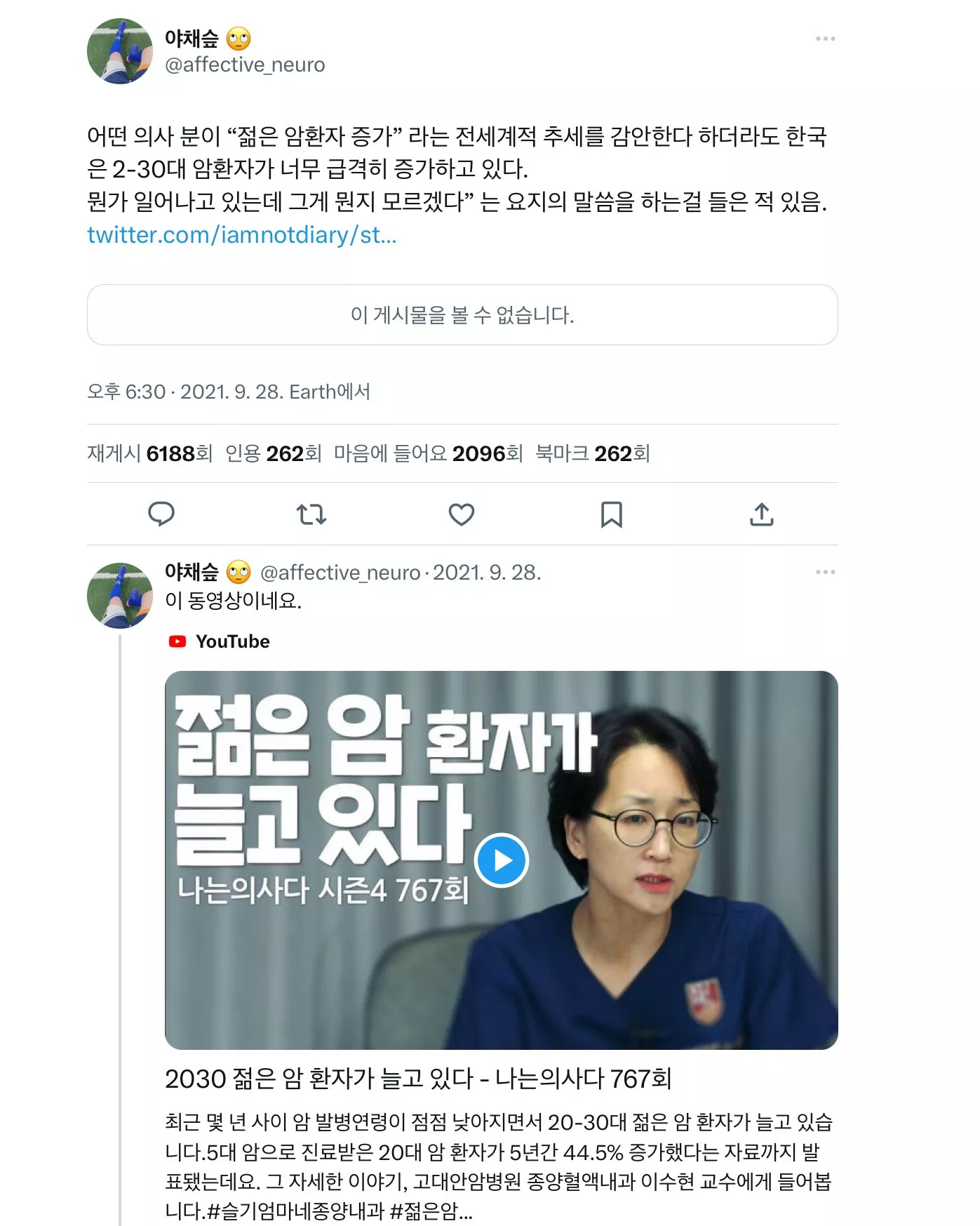 젊은 암환자가 너무 급격히 증가하는 한국