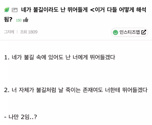 네가 불길이라도 난 뛰어들게 <이거 다들 어떻게 해석됨?