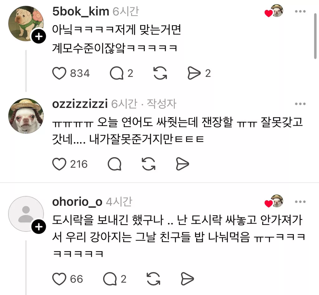 우리 강아지 유치원 도시락 잘못가져갔어..