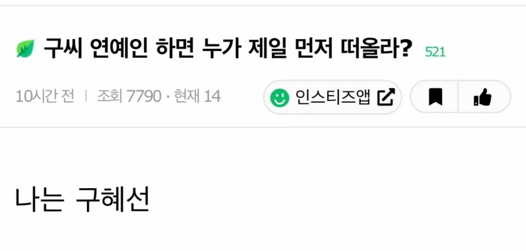 구씨 연예인 하면 누가 제일 먼저 떠올라?