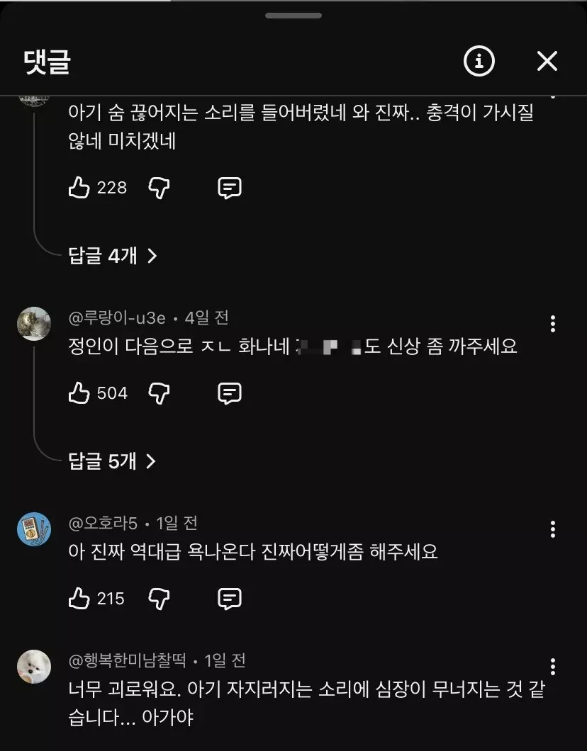 영상으로 보면 그 아기 우는 소리랑 폭행하는 소리가 너무 충격이라 재방송 보실분들은 주의하고 보셈