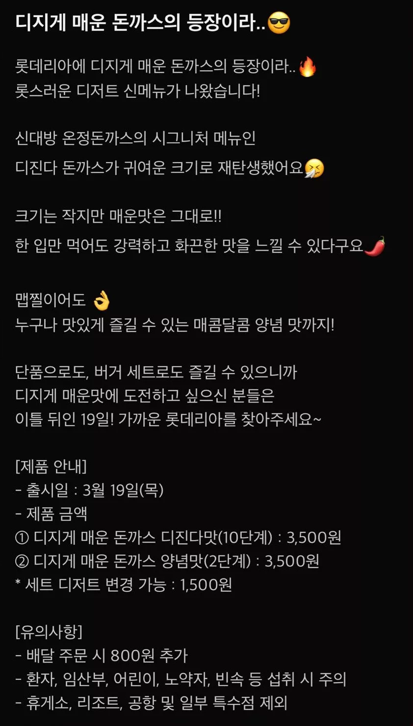 롯데리아 디진다 돈까스 콜라보