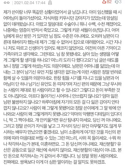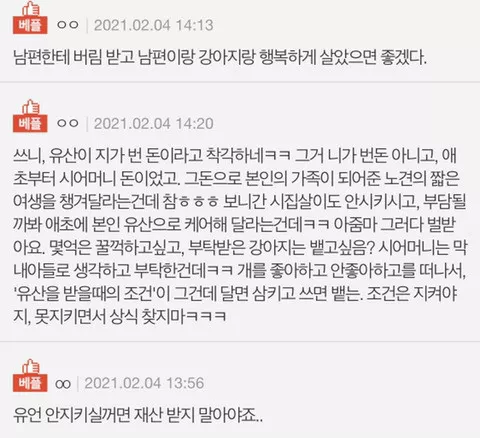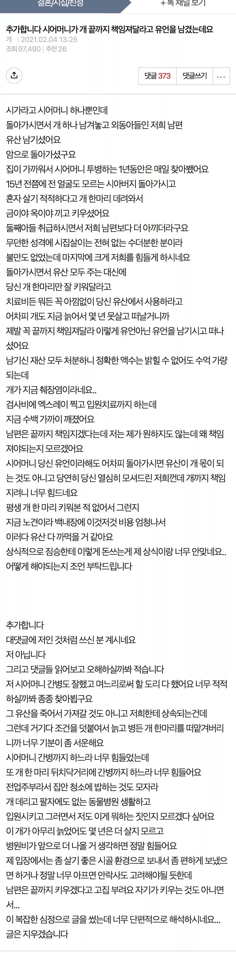 시어머니가 개 끝까지 책임져달라고 유언을 남겼는데요.pann