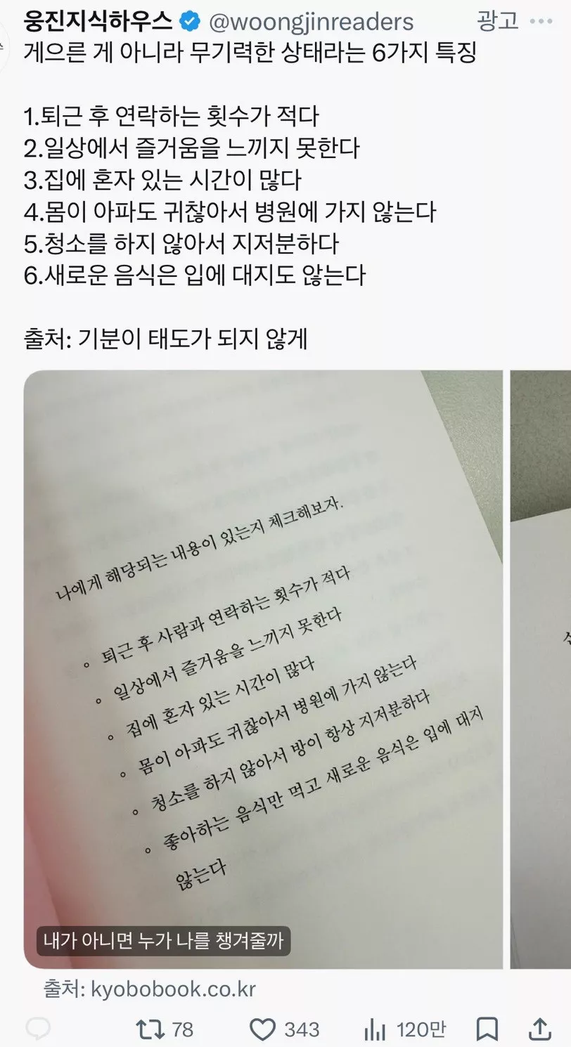 게으른 게 아니라 무기력한 상태라는 6가지 특징