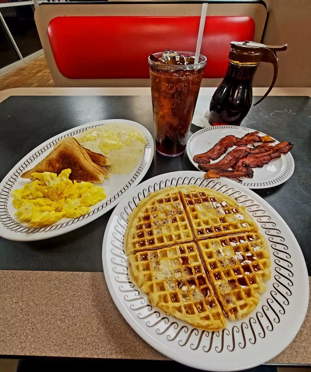 + 미국에서 와플하우스는 24시간 해장국집, 24시간 김밥천국 이런 느낌 밤새 술퍼마시고 좀비처럼 아침먹는 사람 + 약쟁이 + 노숙자 +개진상 많대 진상 많고 이상한 일 자주 일어나는 1호선 느낌이래