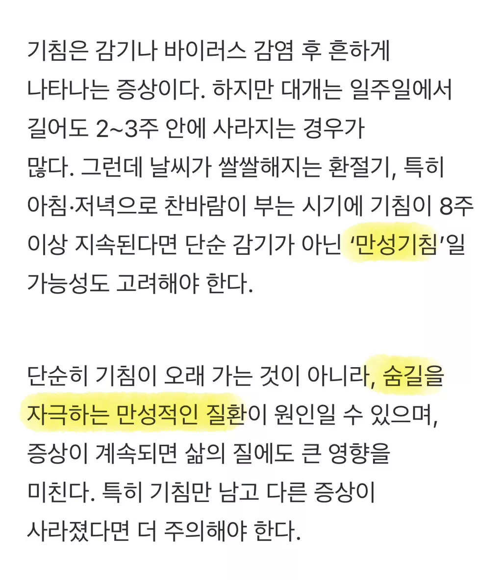 기침이 안 멈추는 ”만성기침“
