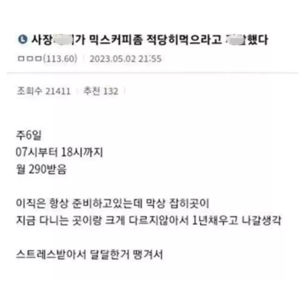 사장이 믹스커피 많이 먹는다고 뭐라고하네...