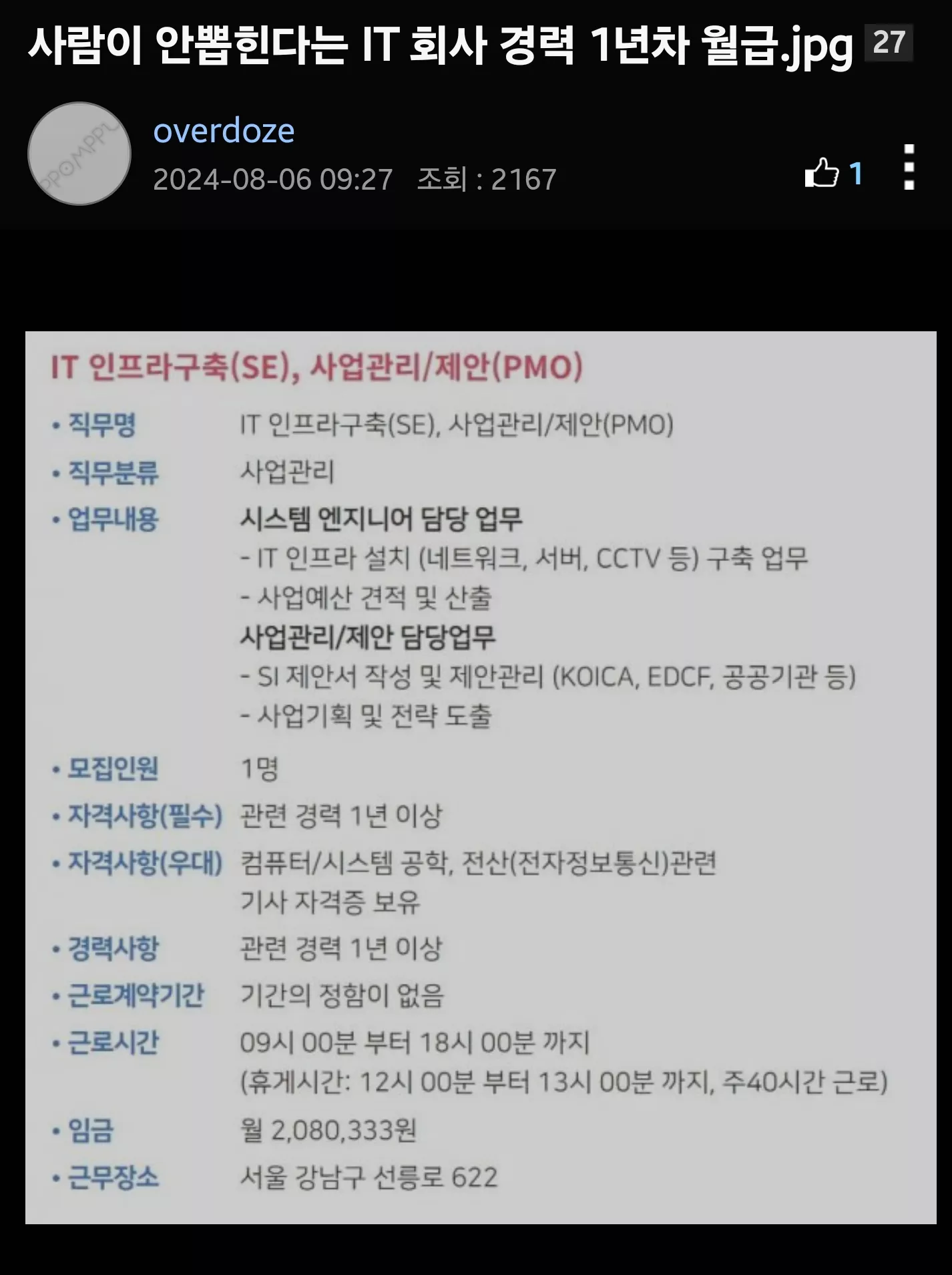 사람이 안뽑힌다는 IT 회사 공고..
