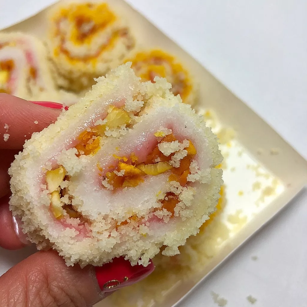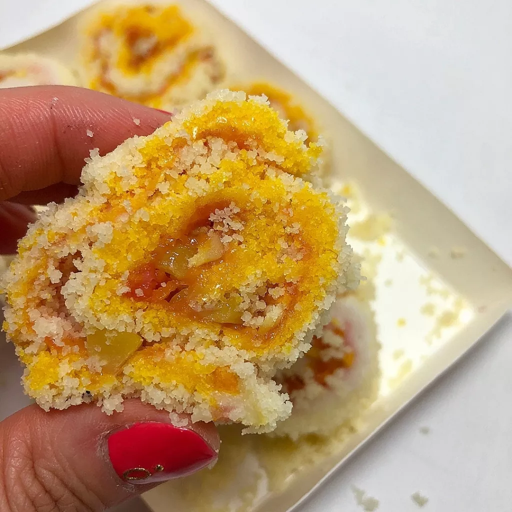 카스테라 고물에 굴린 롤떡케이크,