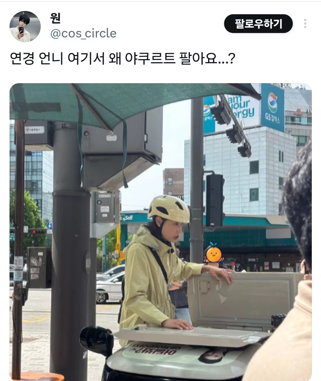 버스 내렸는데 김연경 선수가 야쿠르트 배달하고잇음