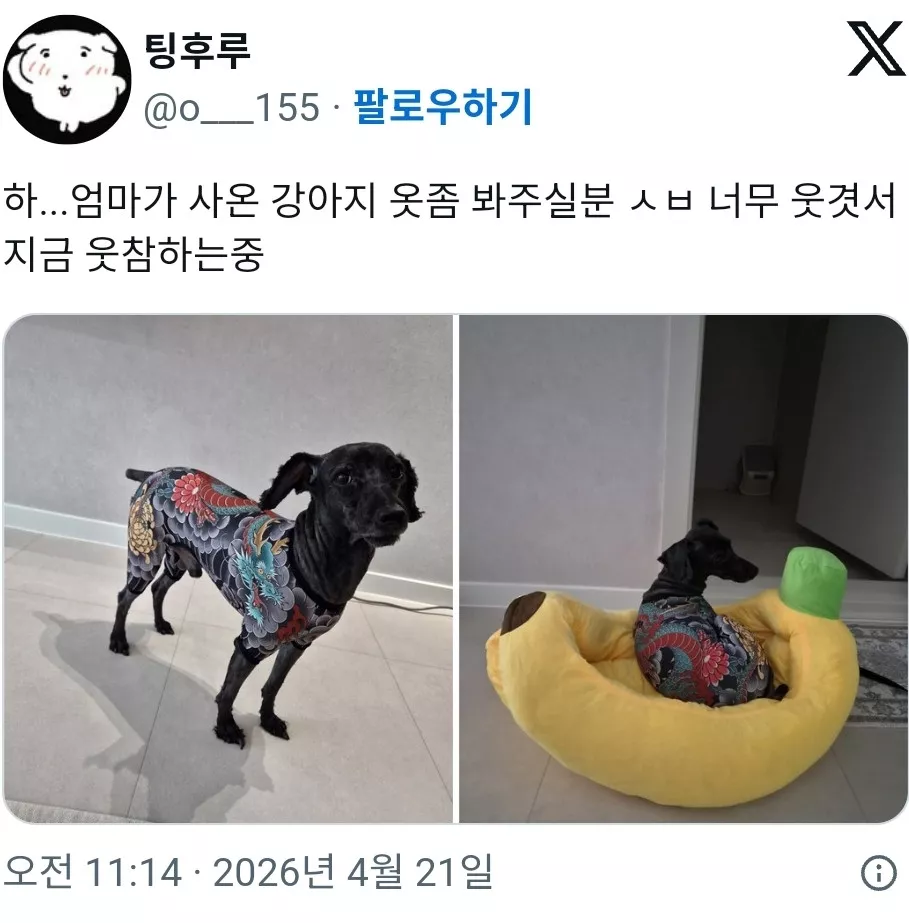 하...엄마가 사온 강아지 옷 좀 봐주실 분 지금 웃참하는 중