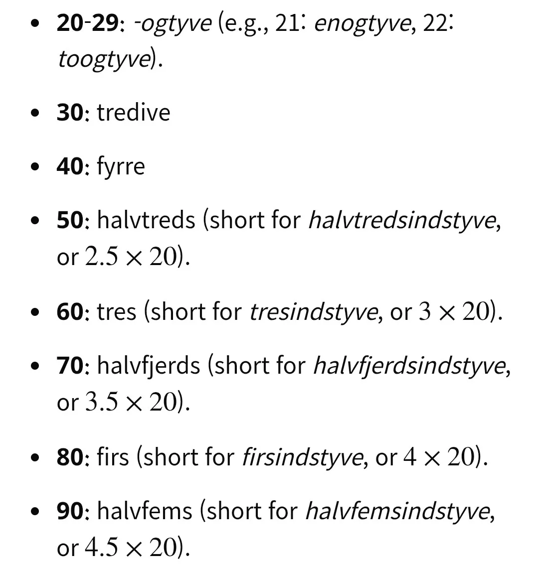 80: quatre-vingt(4×20)