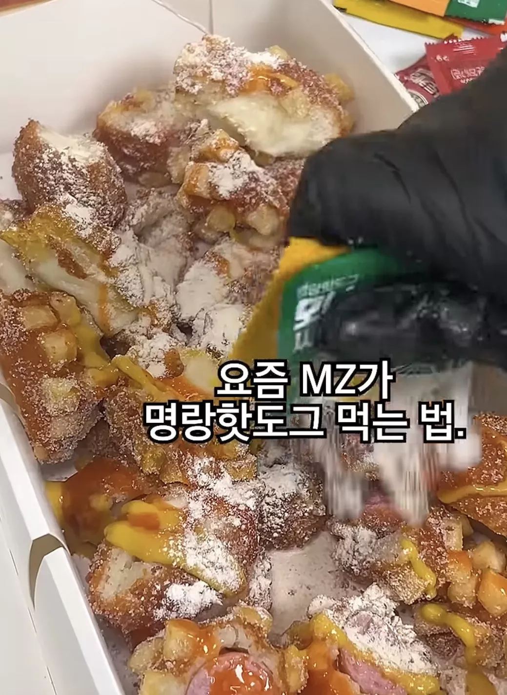 요즘 SNS에서 소소하게 화제인 명랑핫도그 먹는법