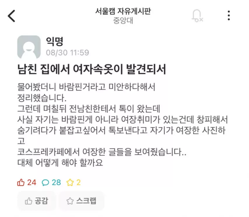 남친 집에서 발견된 여자속옷
