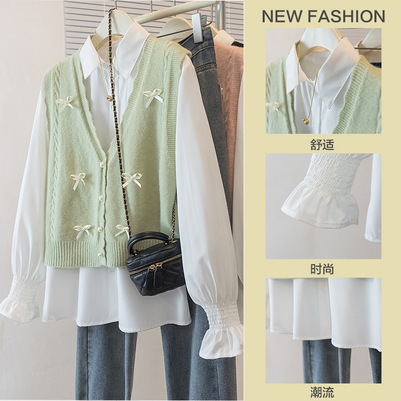 2026 신상 레이어드 셔츠 니트 프렌치감성