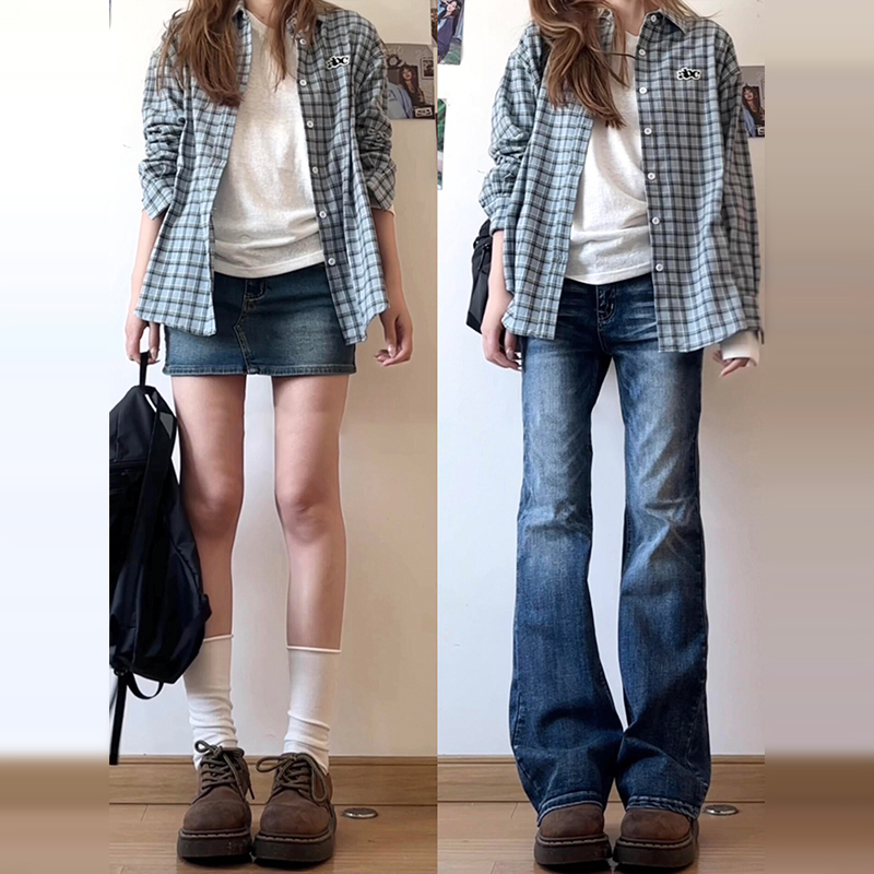 봄여름 주문폭주 빈티지 블루 체크 루즈핏 셔츠자켓