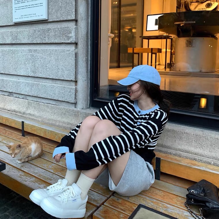 신상 플로리다 무드 배색 스트라이프 숏가디건 영국감성