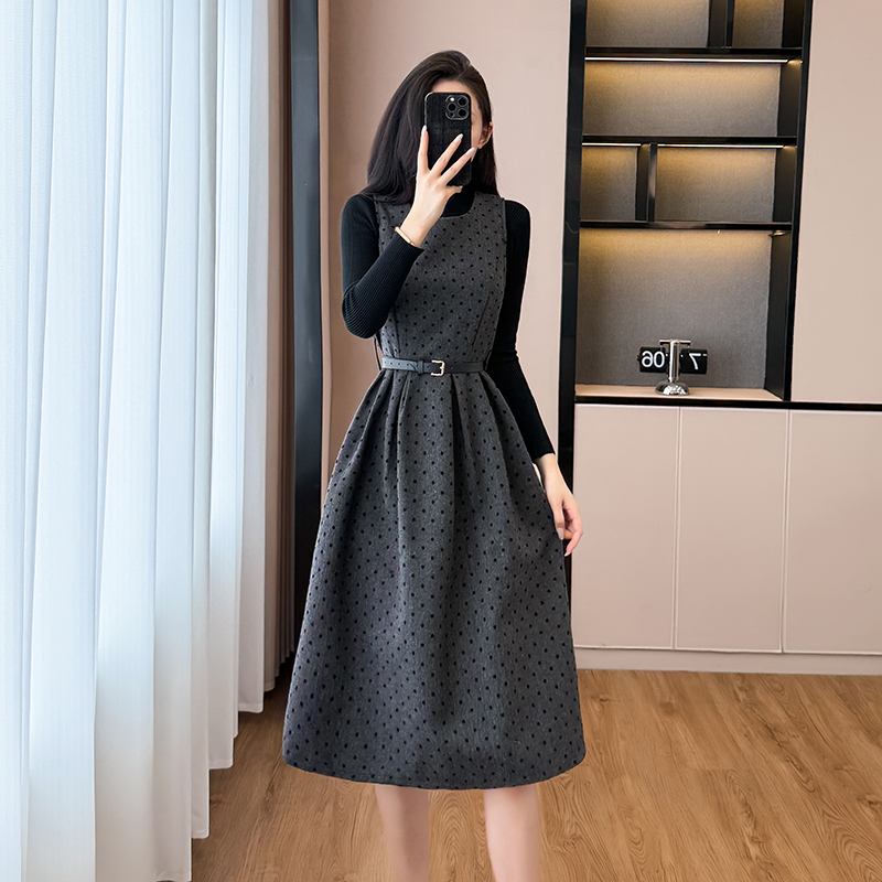 하객룩 추천 라운드 도트 모직 베스트 원피스 투피스 슬림핏 완벽체형
