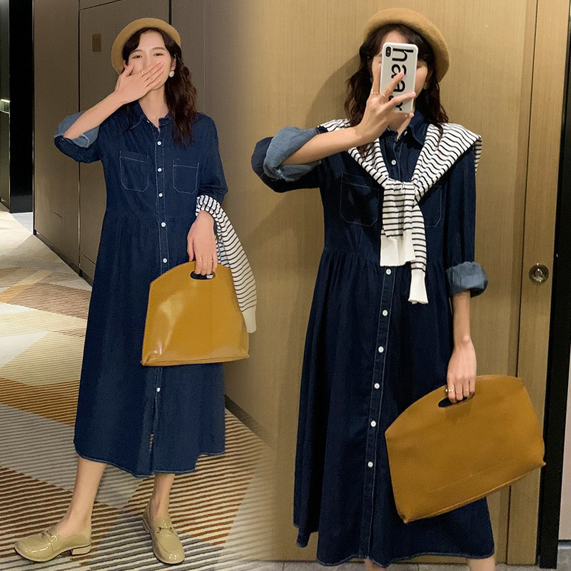 봄가을 고급 빈티지 슬림 데님 원피스+숄 임부세트, 체형커버