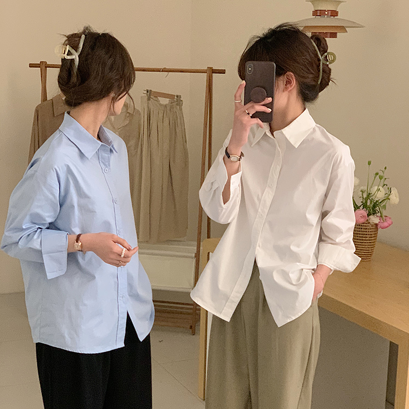 신상 카리스마 블루 화이트 여성 셔츠 기본핏